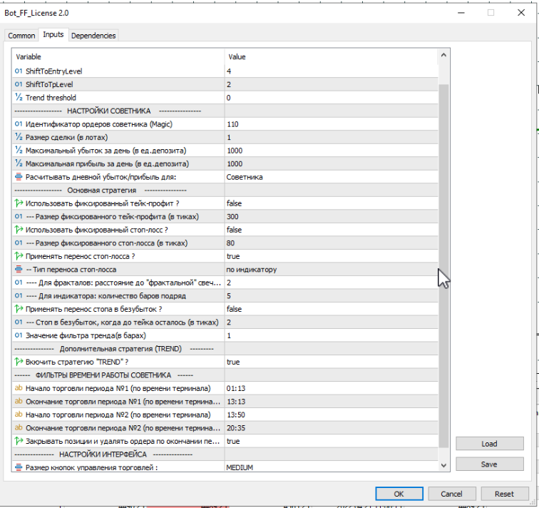 Настройки индикатора и бота одинаковые?