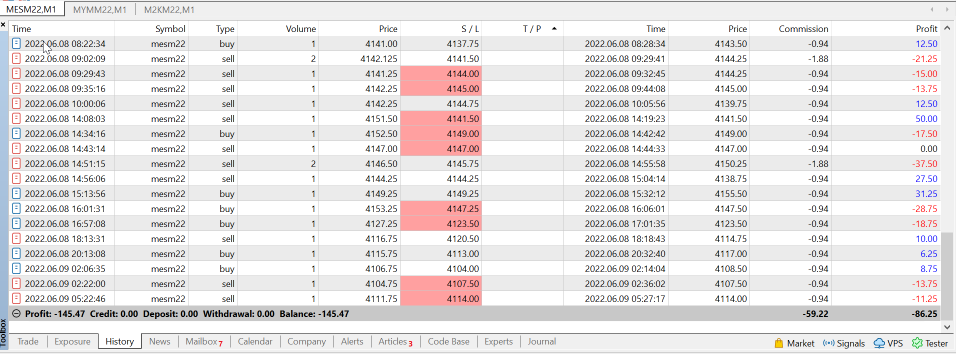 Стратегия #1, S&P500, M1, Профит: -145 долл