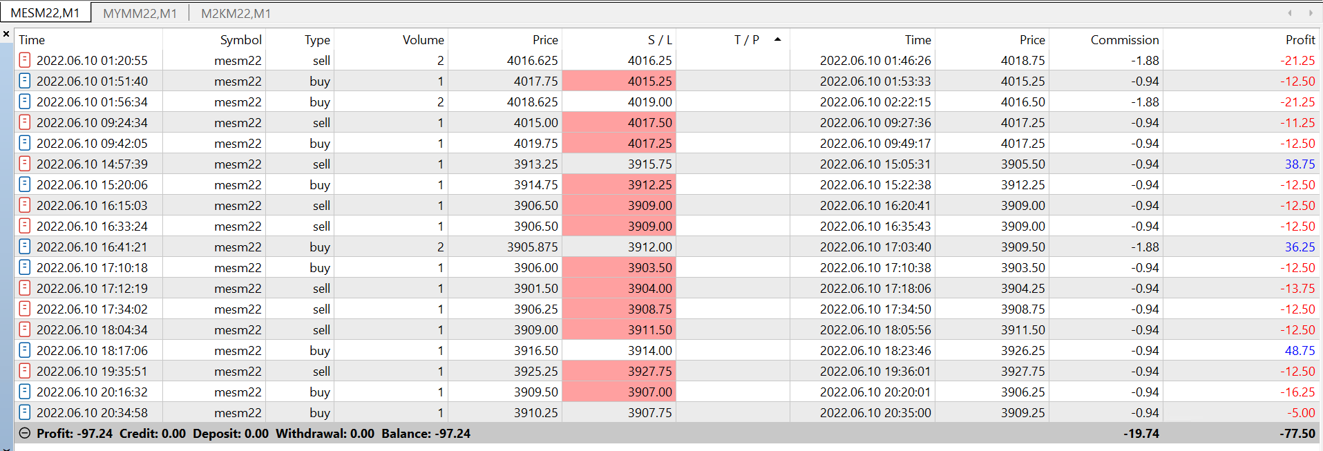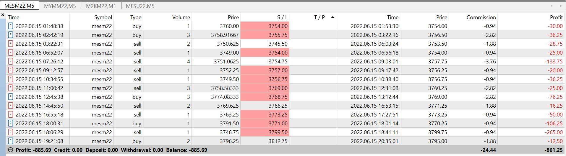 Стратегия #1, S&P500, M1, Профит: -97 долл