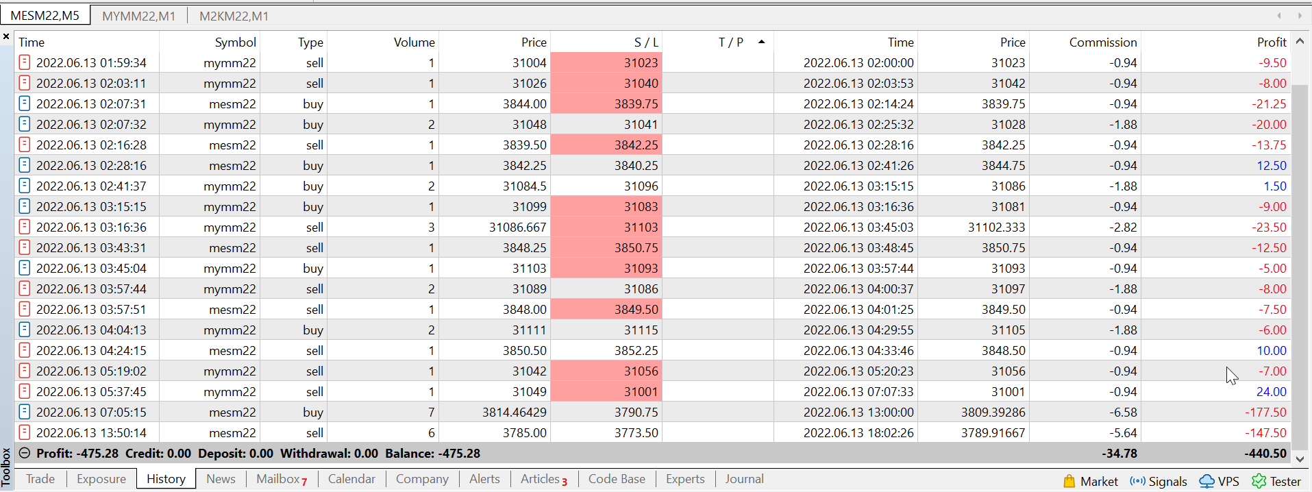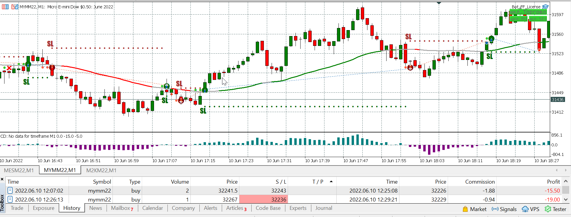 Не думаю, что это к чему-то хорошему приведет, т.к. Dow у меня торгует без тренда и по SL он не опускается низко, но сливает по страшному, за сегодня уже -100 долл слил.