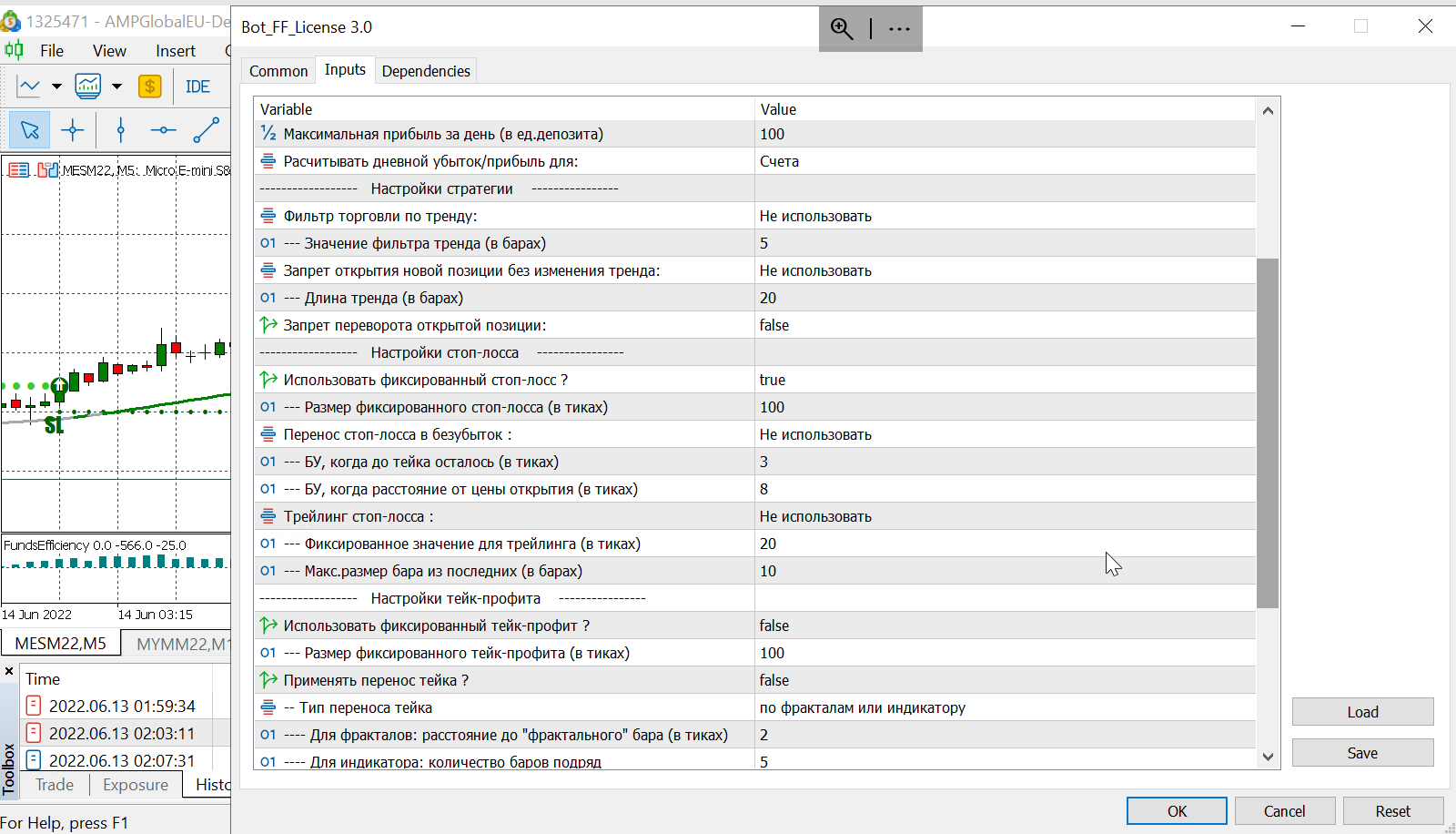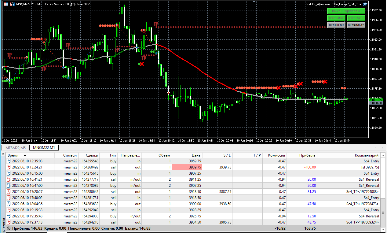 • Примечание: Депозит слит, следующее демо возьму на 1000 долл, чтобы так быстро не сливал. Последние 2 дня торговля шла по новым настройкам. Есть ли возможность сделать так, чтобы бот не торговал на серых линиях по тренду - в прошлой версии это хорошо себя показывало, ведь по сути широкие боковики - это тоже тренды? Отпишитесь, у кого получается торговать на CME?