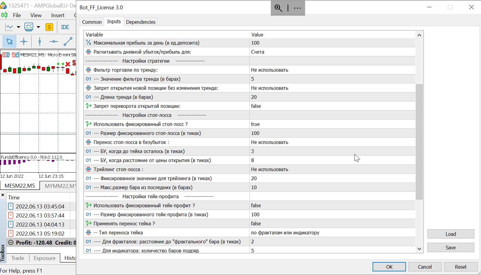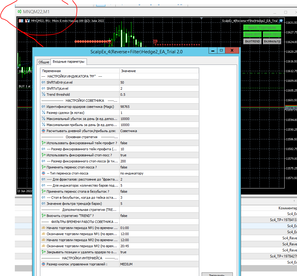 • Примечание: Торгую с целью 5% в день. Я запутался в версиях бота: на каком-то нормально торгует - не трогает серые линии, на каком-то зеркально торгует, один в тренде, другой против тренда. В общем, пока я не знаю, с каким ботом торговать и с какими настройками. Вопрос: что нужно мне поправить, что включить и выключить, чтобы увидеть профит в конце недели? Спасибо.