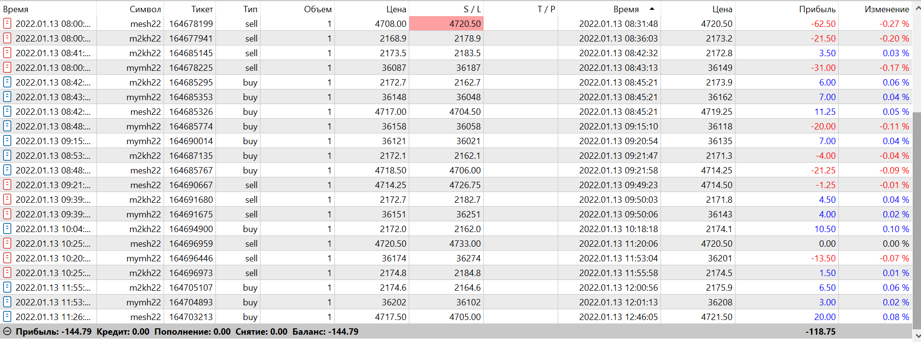 В общем, сегодня заработал на максимуме 430 USD, но потом было 4 сделки с большими минусами, ушел ниже 300 USD, но потом все выровнилось и закрыл терминал с +7 USD, хотел после открытия АМ еще запустить бот, но такой вот казус. Отсюда вопрос, как закрывать терминал? Нужно ли выключить бота везде, а затем терминал закрывать? Спасибо.