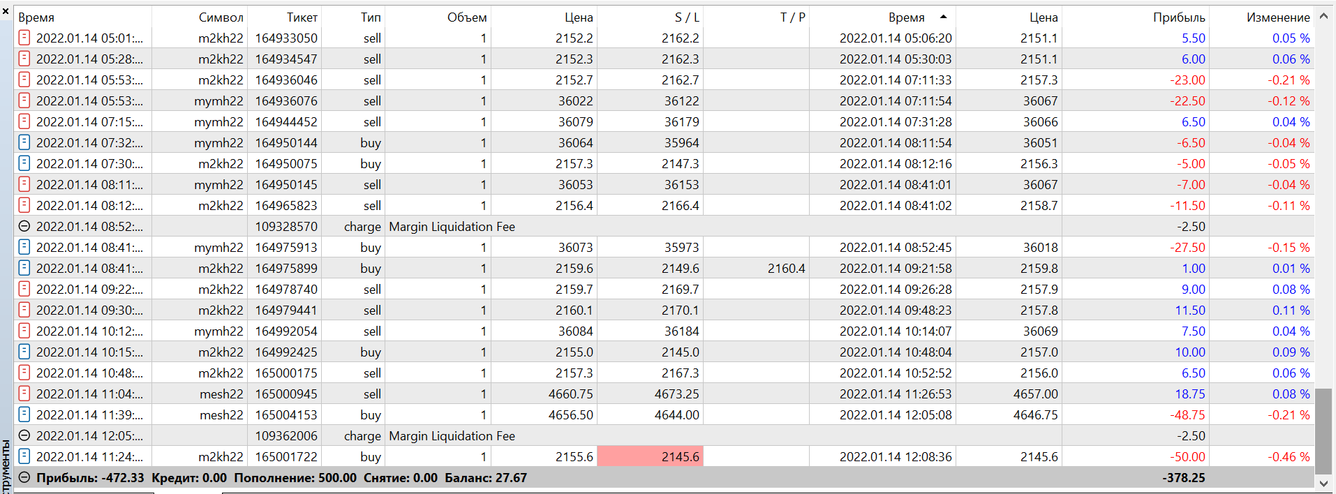 Когда закрывал терминал баланс был 364 USD, но пришел с прогулки и баланс уже 49.82 USD. Не совсем понял, как так получилось. Вы могли объяснять регламент закрытия терминала, чтобы бот уже не торговал и ничего не доделывал?