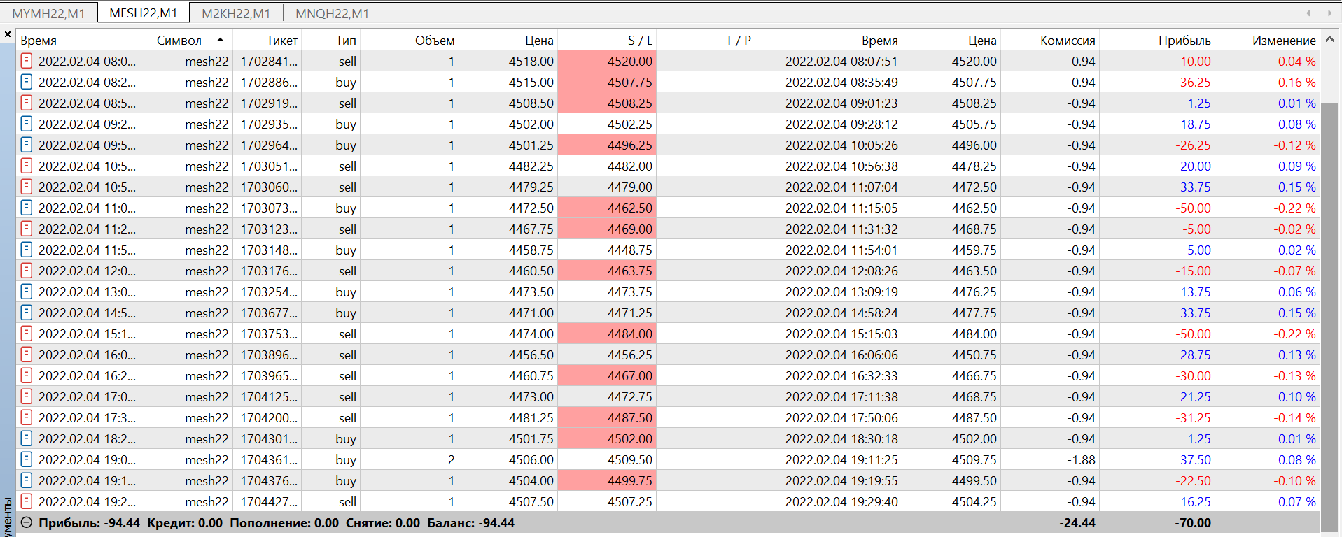- Прибыль: -94 USD