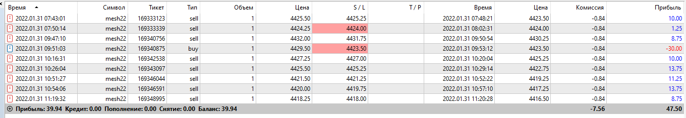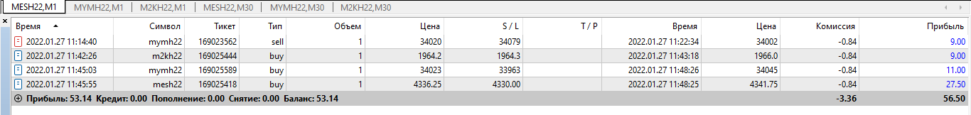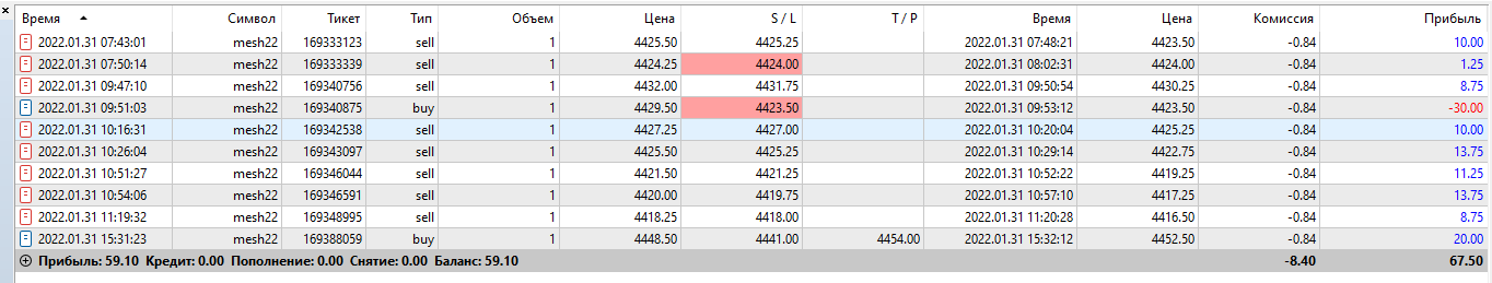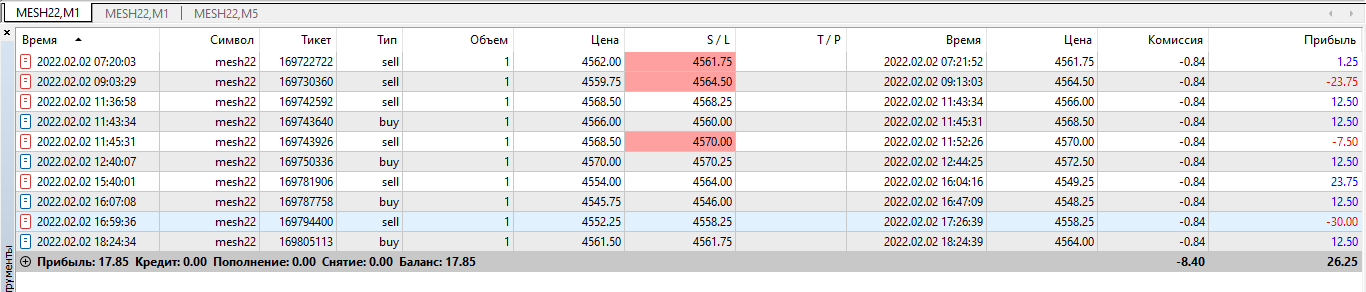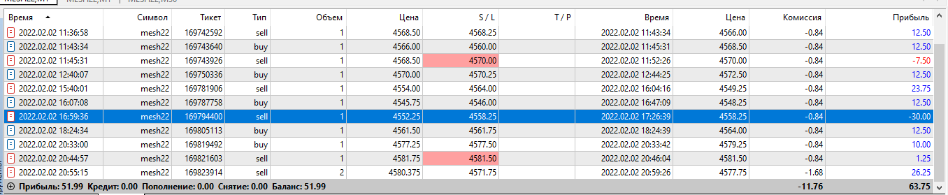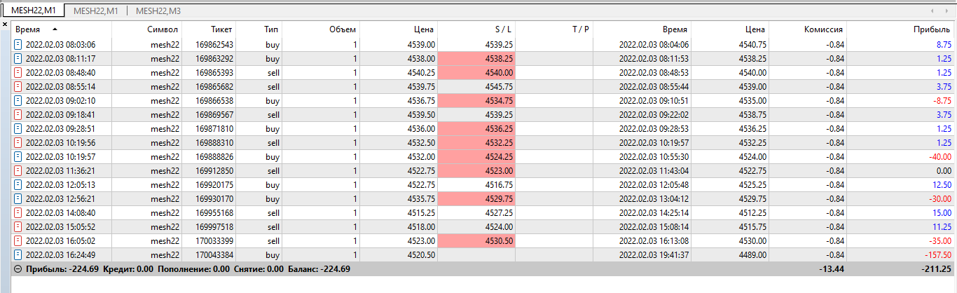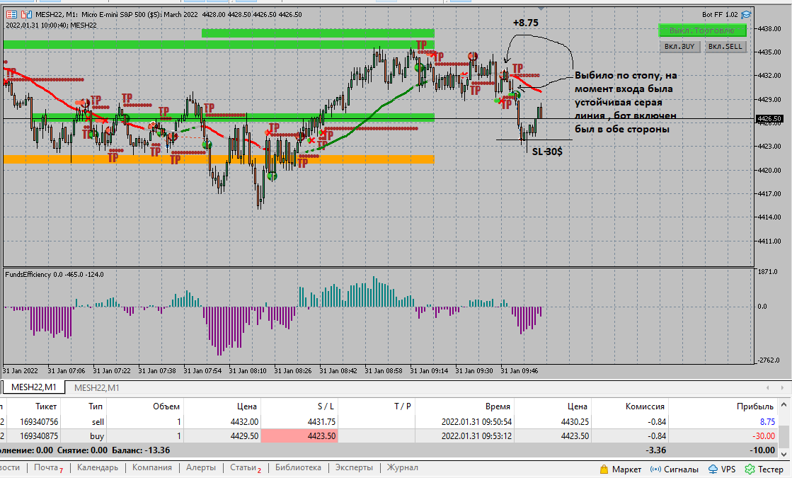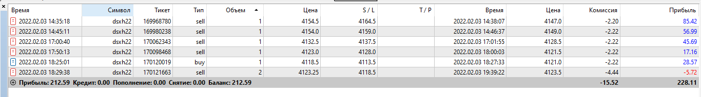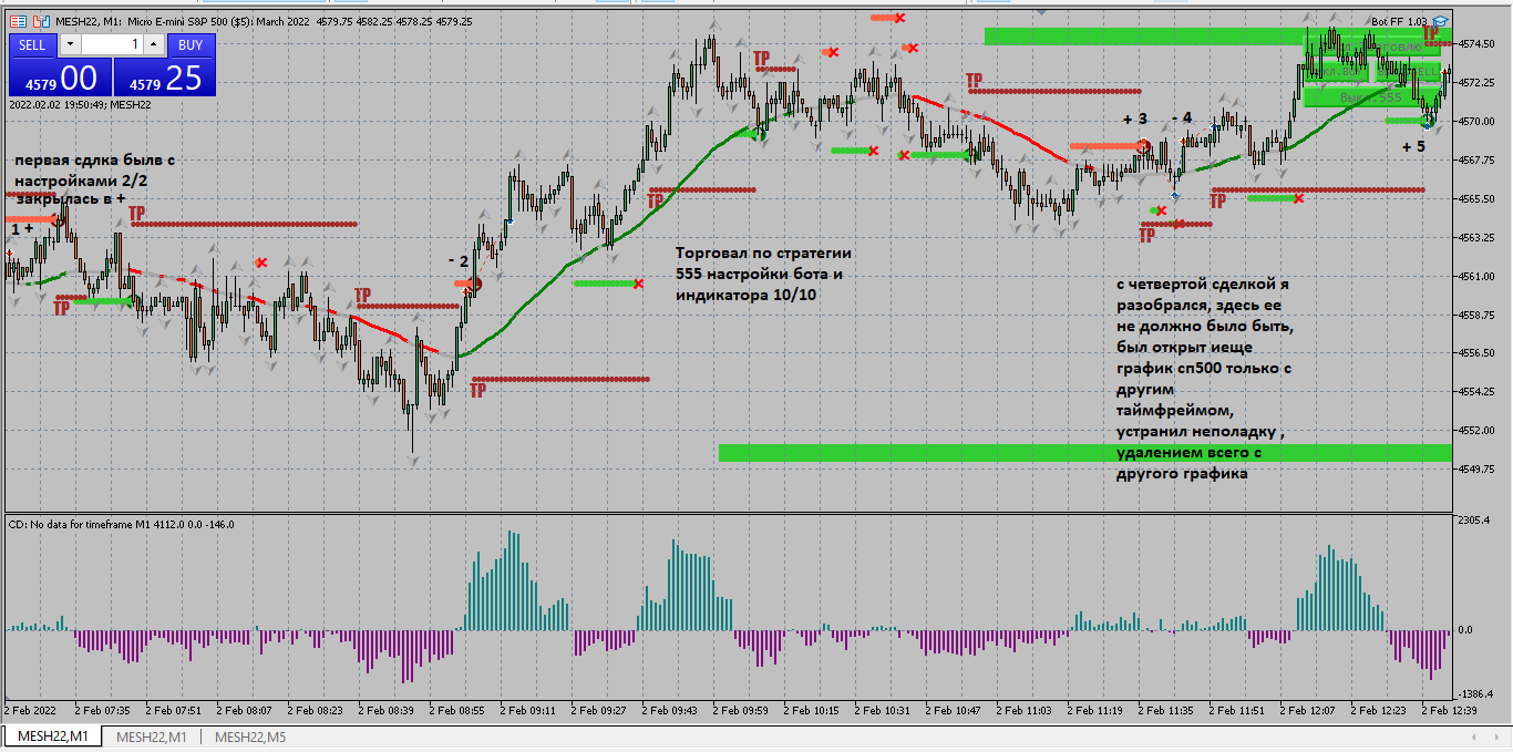 Отчетность за 03.02 Второй день на автомате настройки 2/2 сделки были разного характера, несколько сделок по б/у хотя потенциал был больше. пару сделок по фракталу , несколько сделок бот ошибочно открыл .