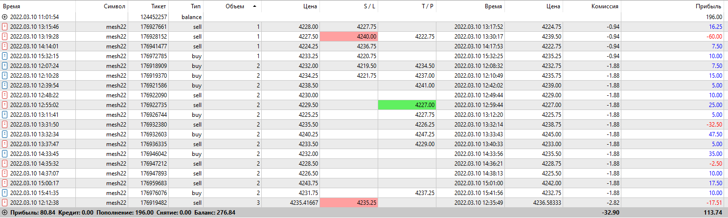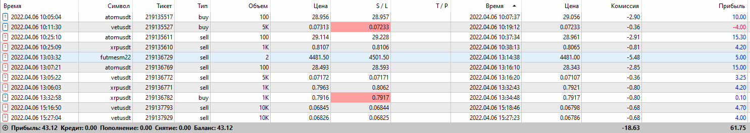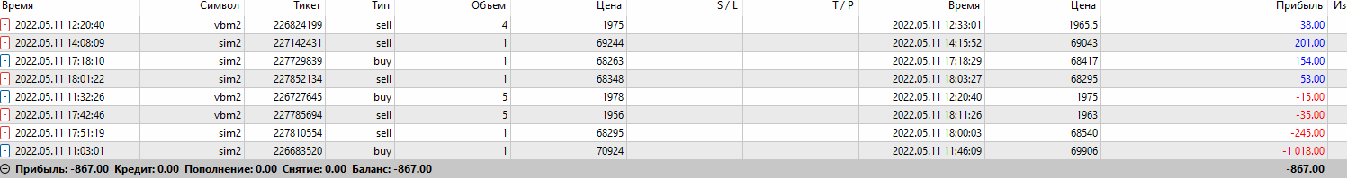 Минусовые сделки начались с начала торговли, в списке они не по порядку, смотрите время...