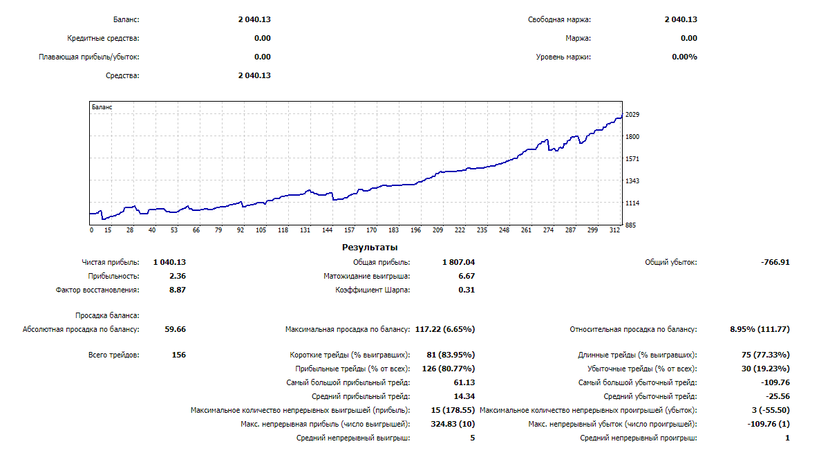 Торговля утром на азии на спокойном рынке. Чистая прибыль +154,69.
