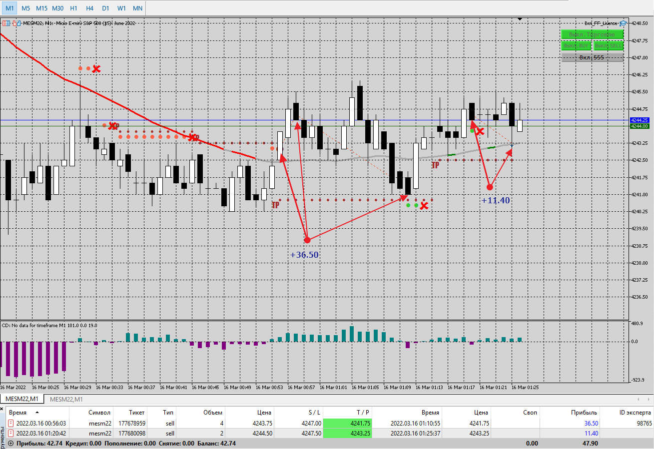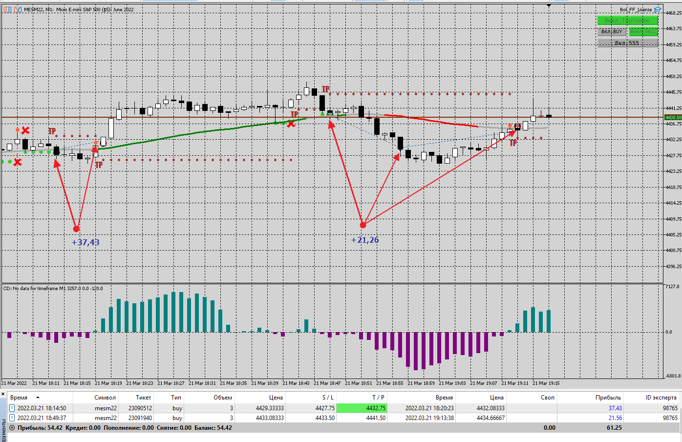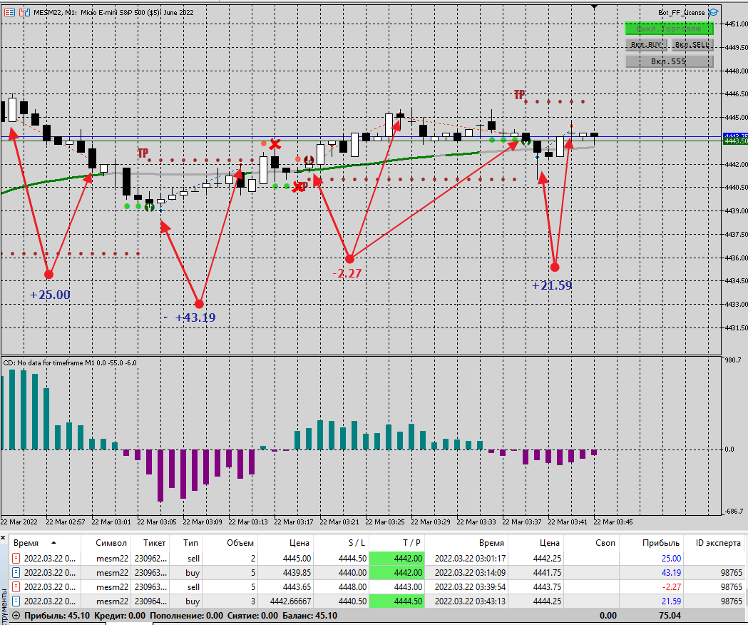 Отчёт по торговле 22.03.2022 Торговля на Азии. Прибыль 45,10 чистыми. 6% от депозита. Счёт евро реал.