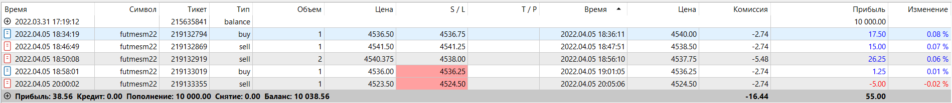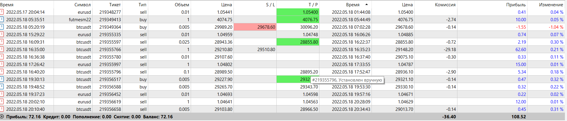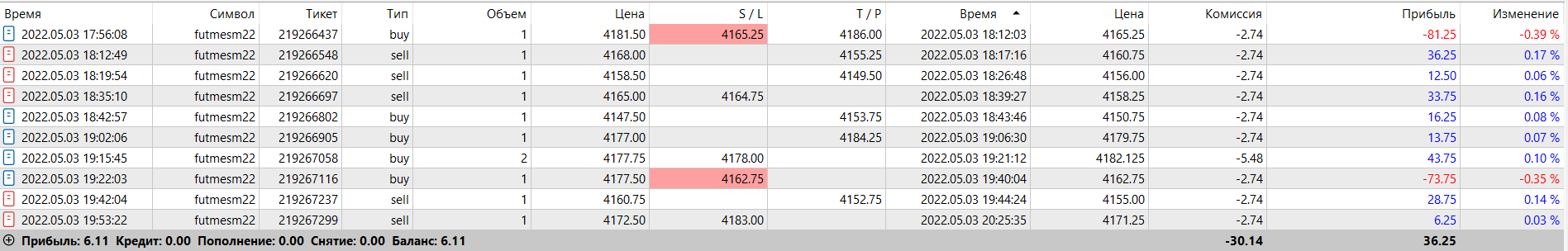 Андрей, здравствуйте! Вы торгуете на полуавтомате? У меня за 12.04 результат минус 200$. Торговля на полуавтомате. Правда, время сделок раньше. Пытаюсь понять, что я не так делаю )