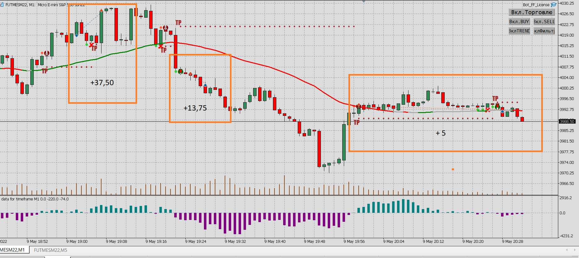 Добрый день J2T. Честно сказать не нравится, компьютер тормозит. Торгую на полуавтомате. Кнопки отключаю, когда не торгую, чтобы "бот" бесконтрольно не открывал сделки. Настройки - стандартные. Показания "бот" - это дополнение к принятию решения о входе в рынок. Так же беру во внимание показания старших временных графиков. 15/30 минут.