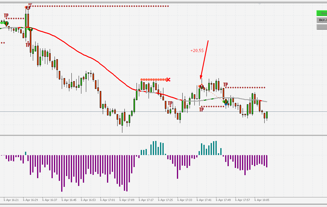 НО! 3 сделки закрывались непонятно как. Цена не доходя до тейка закрывалась в 0,5$ И это бывает очень часто. Да, робот для АМП, но использую его в полуавтомате на форексе.
