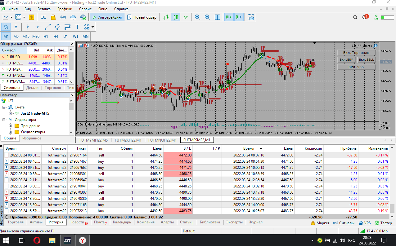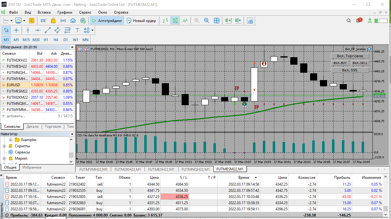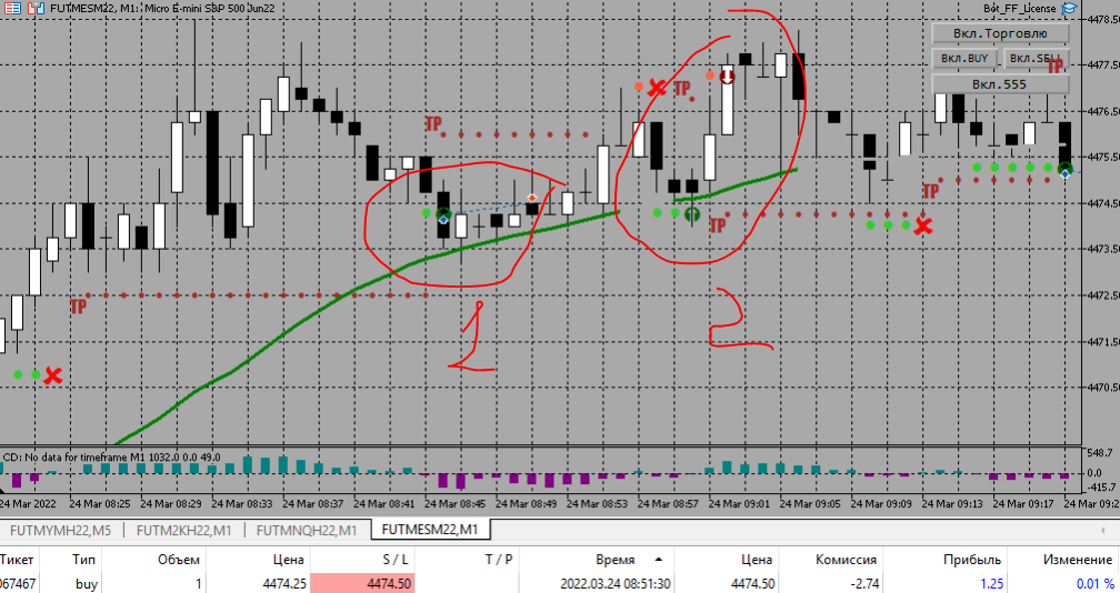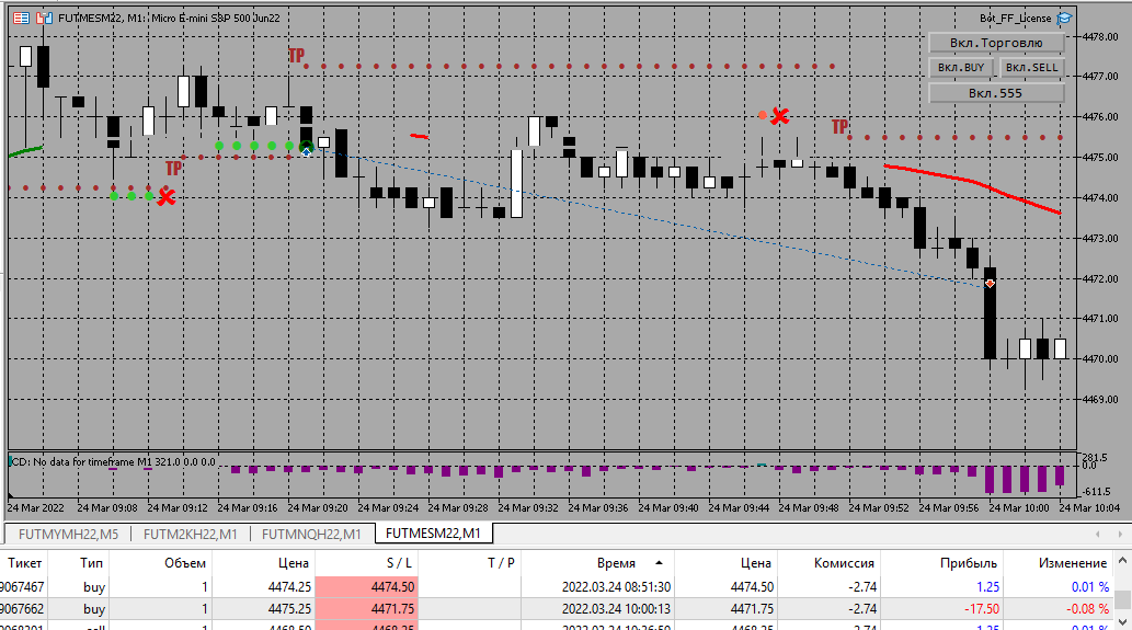 Итог за день: -77,5 общий итог по счету (без комиссий): -148,75. Пробовал отключать фрактальный стоп но при условии появления тренда в противоположную сторону переносил вручную стоп под фрактал. Как в чате сказали надо пробовать какие то дополнительные инструменты для анализа (старшие таймфреймы или еще что нибудь для выявления разворота тренда или окончания флэта). Дмитрий что можете посоветовать?