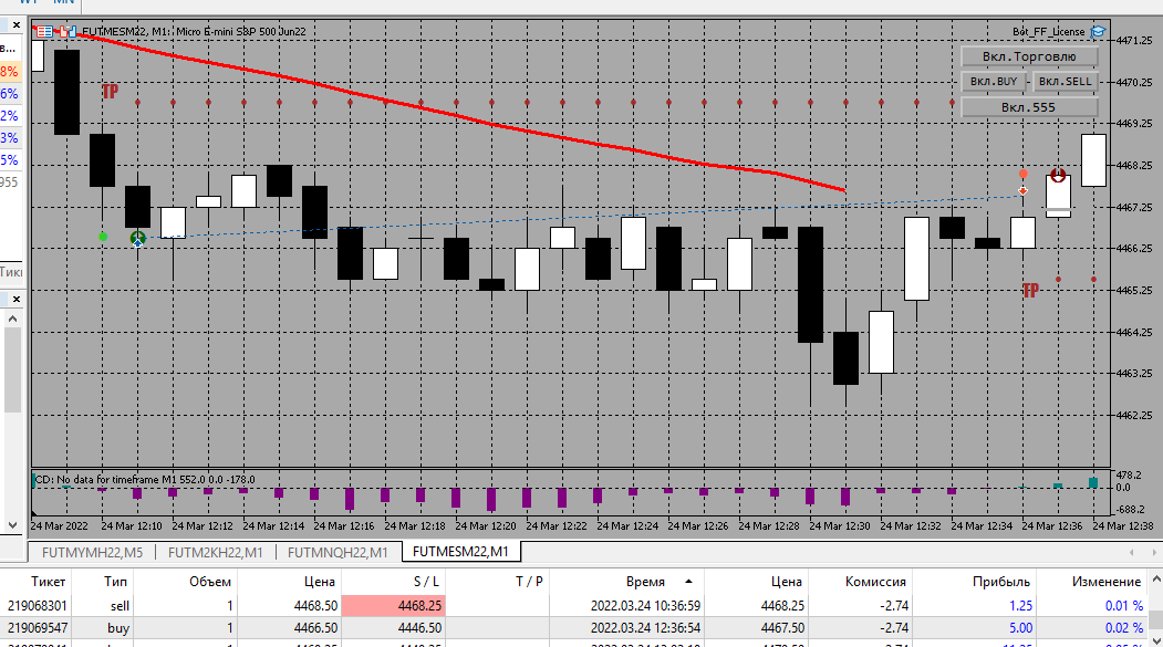 2. Я сам в шоке, индикатор как подменили... или "сглазили"... или день странный был какой-то ....то не срабатывал один-два тика до ТП, то сам закрывался в минус, фильтр 555 вообще такое впечатление, что не работал... сами сделки открывал бывало не по FundsEfficiency, в общем какой то баг или глюк был, вероятно произошел....Может переустановить все заново?