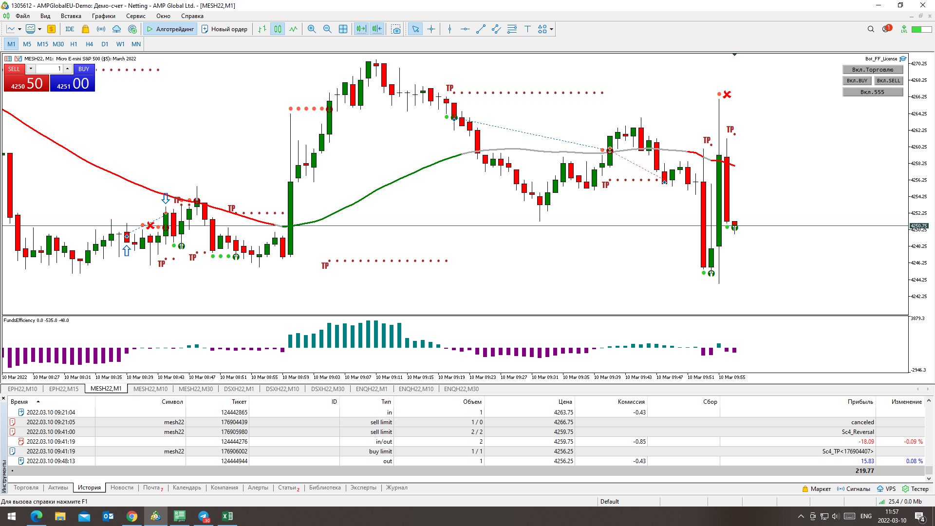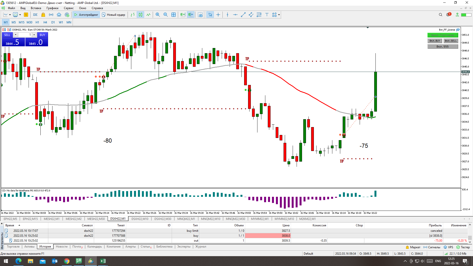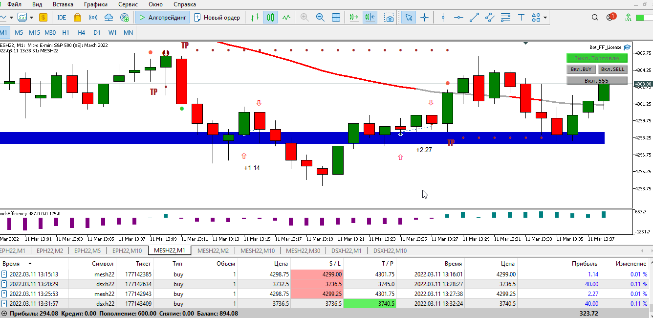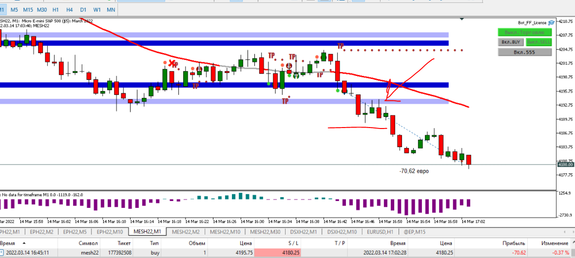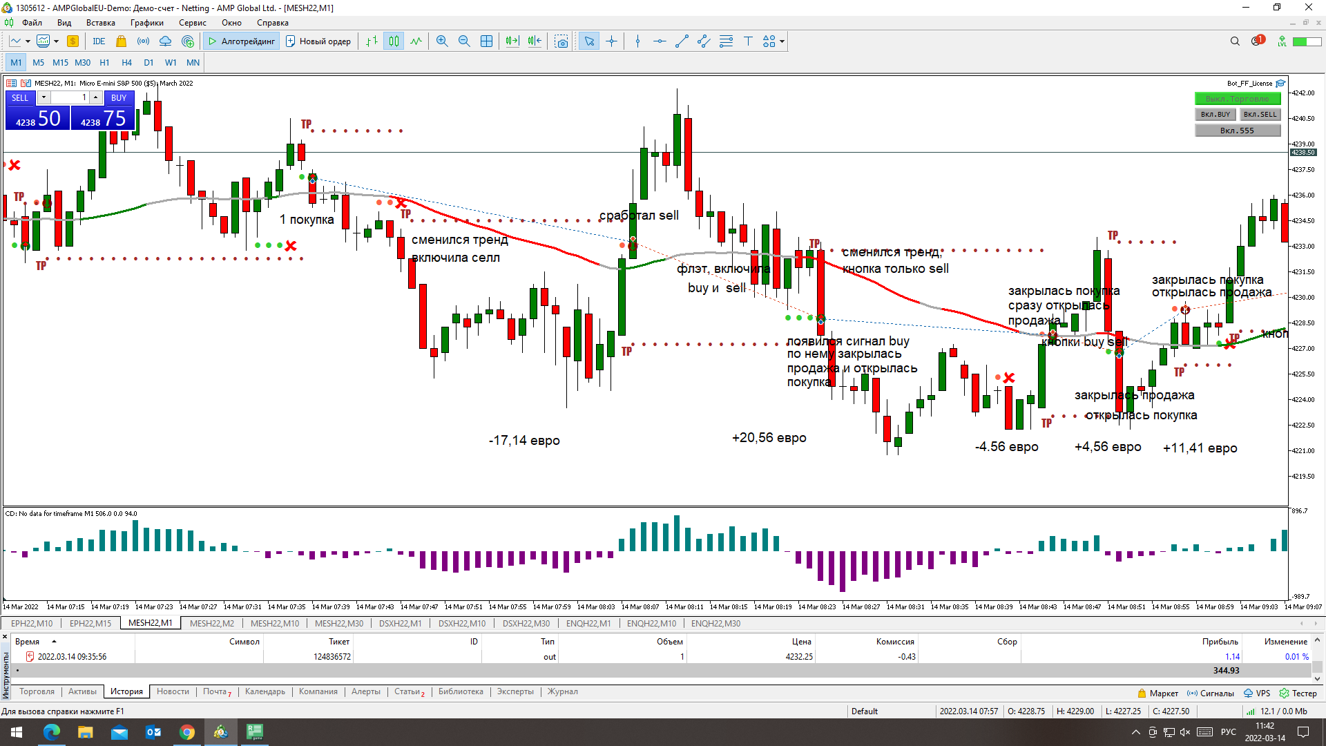 Сегодня решила торговать только ботом. Приняла во внимание рекомендации Дмитрия в ветке Татьяны. Результат по MESH +3.43 евро. Работы много, результата мало :))
