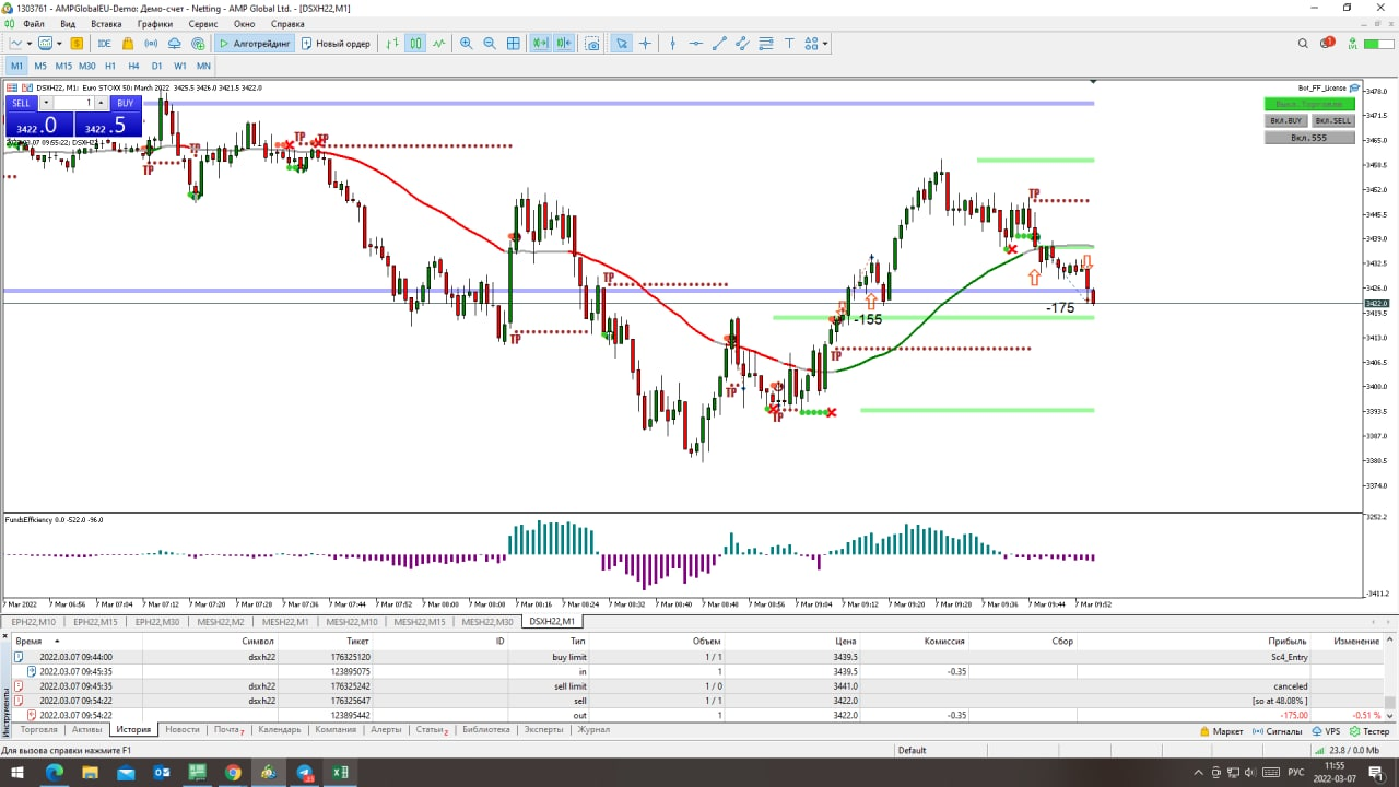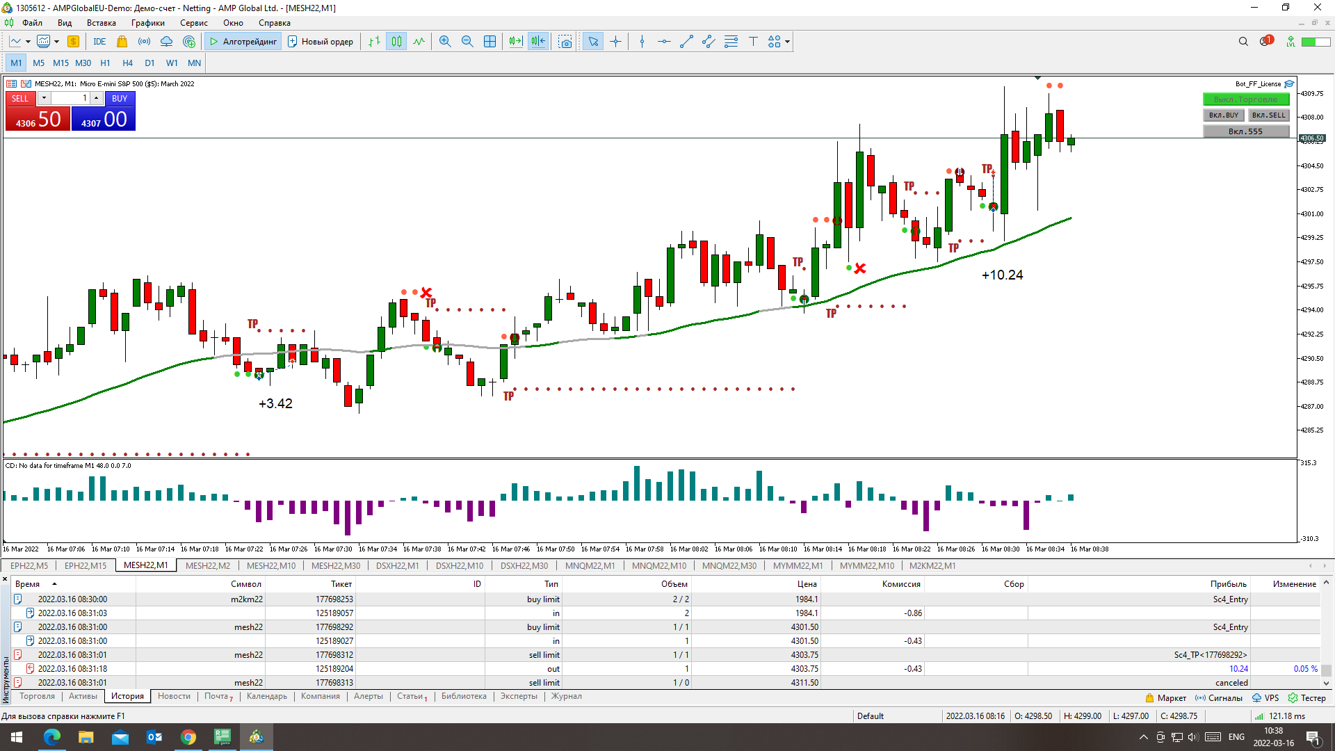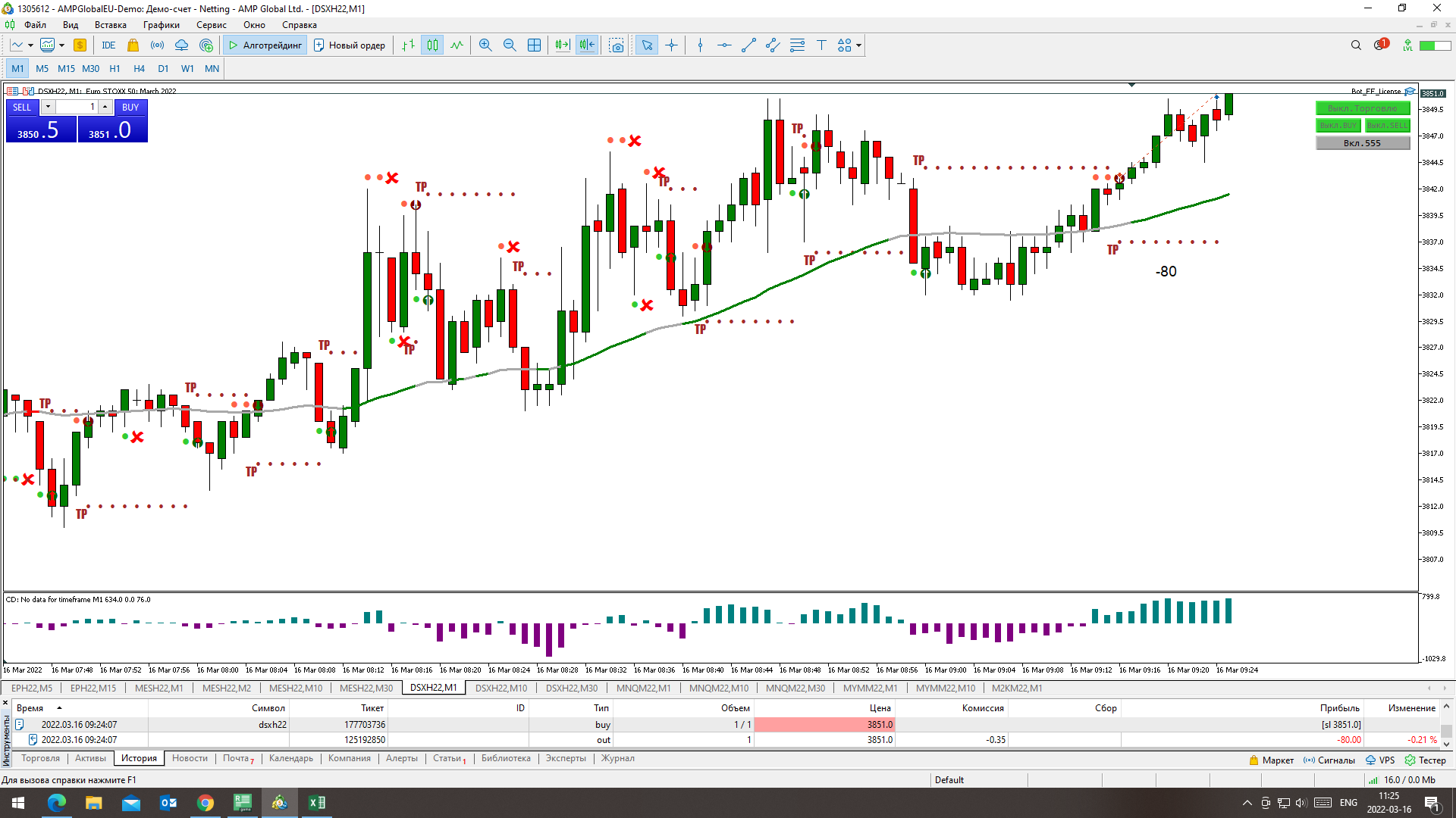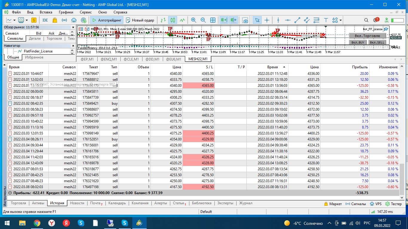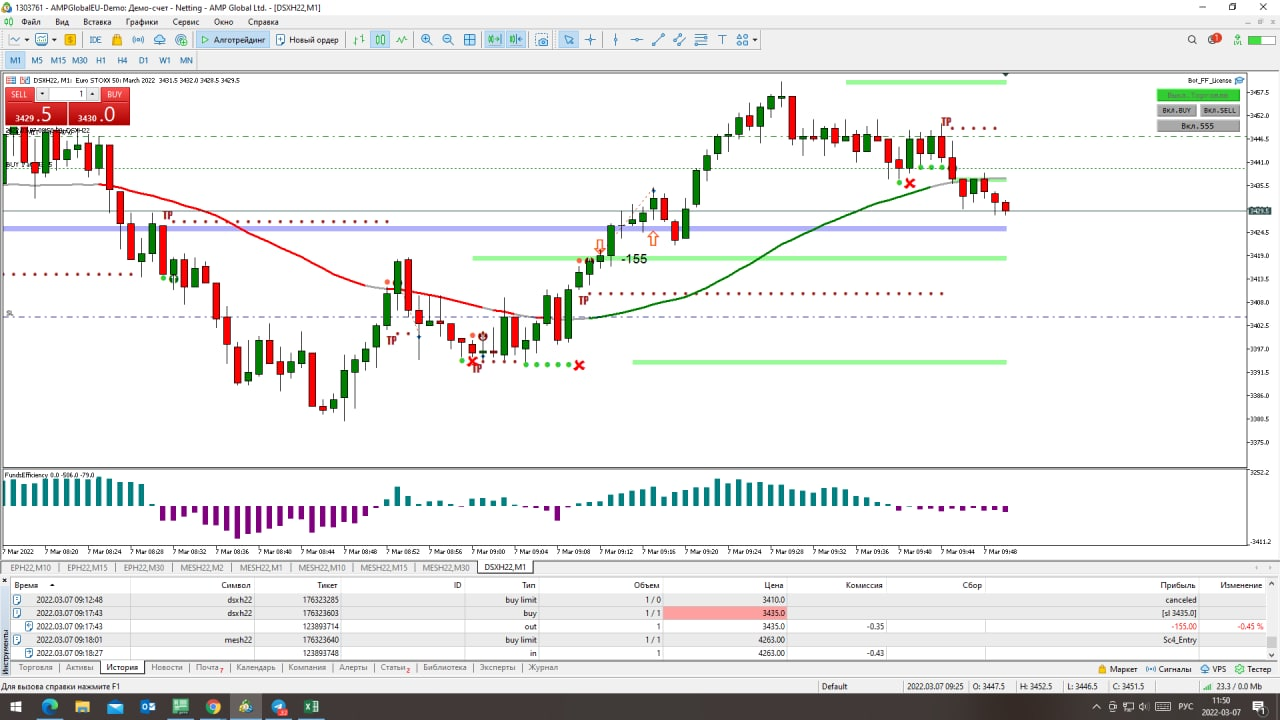 Сегодня решила торговать только ботом. Приняла во внимание рекомендации Дмитрия в ветке Татьяны. Результат по MESH +3.43 евро. Работы много, результата мало :))