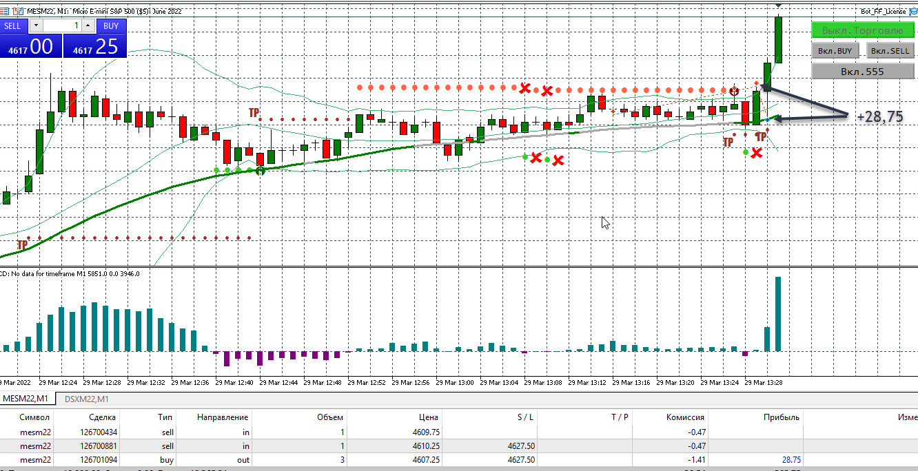 29.03.2022 AMP DEMO Сделка на Европе, отступ сигнала свечи 10. Результат +28,75$. В связи с загруженностью вечера (два вебинара ) продолжать торговлю буду завтра. Сегодняшний план выполнил.