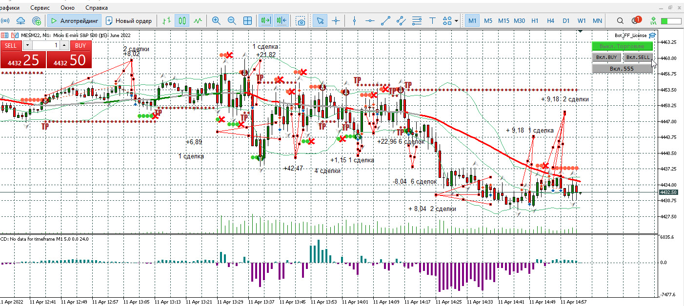 11.04.2022 AMP РЕАЛ. Торговать начал с Европейской сессии, продолжил на Американской. Словил один минус (- 8,04). Если бы вход был не 6 лот, а 1 лот, то минус был бы минимальным. При плане +25, наторговал +121,67, а чистыми прибавил 99,28. Закончилась неделя торговли на реале. За это время баланс увеличил на 201,13.