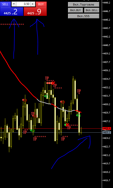 Давид ,добрый день. Если вы торгуете по тренду , то отключайте кнопки Сел, Бай и Фильтр. Оставляйте только Тренд и Торговля .А если торгуете флэт ,то в настройках