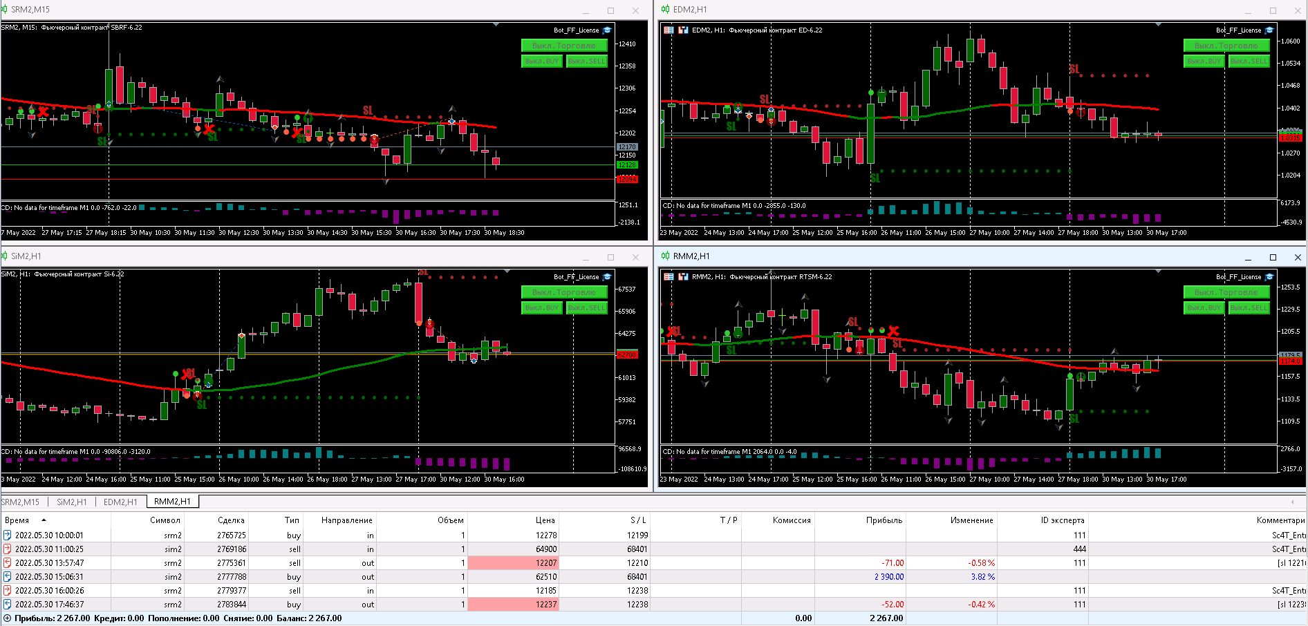 Первая модель рассчитана на вход в тренд, но за три дня входа в тренд так и не произошло, поэтому были только убытки и я поменял по трем инструментам немного стратегию, но по доллару оставил ожидание тренда - вот он и выстрелил (если бы я не закрылся в ручную, то вместо 3 тыс. можно было поднять 7 тыс., а может и больше - сегодняшняя торговля покажет)