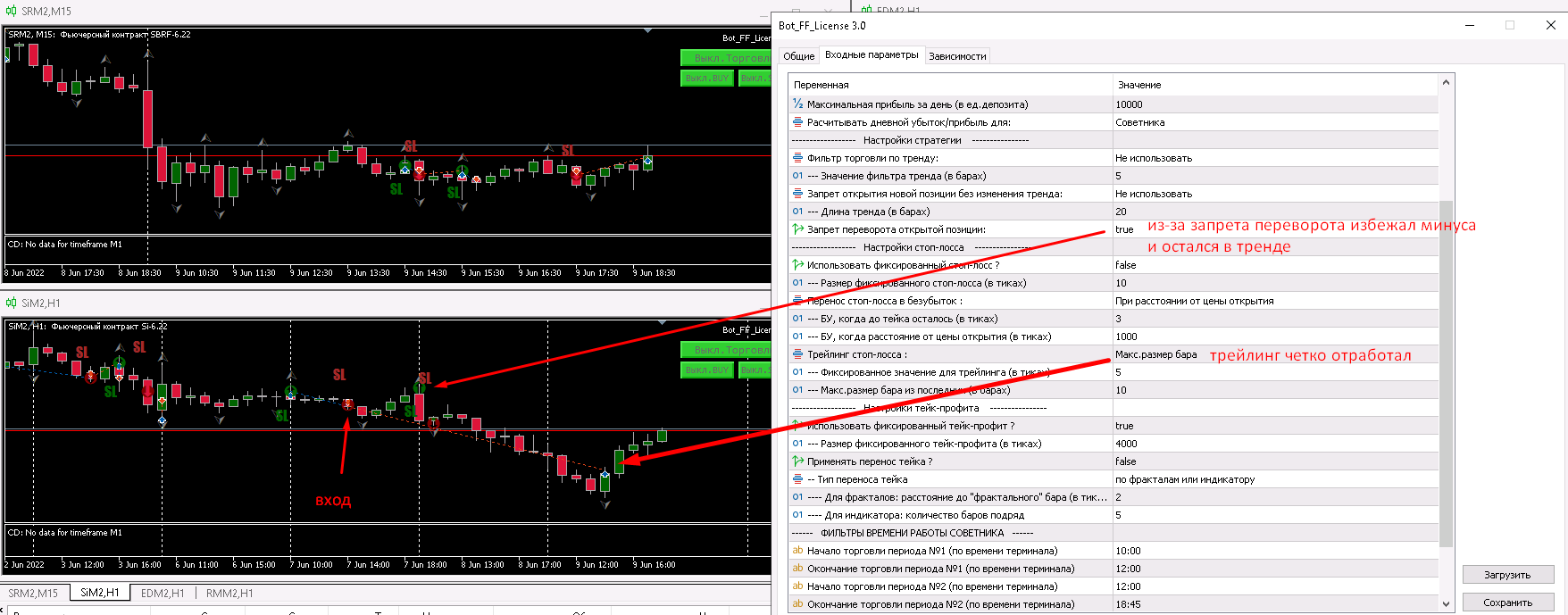 Новая версия бота в тренде хорошо отработала (все комментарии в скрине):