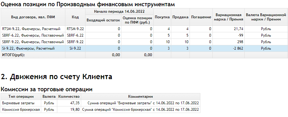 Также остались две сделки открытыми, по которым на конец прошлого дня минус.