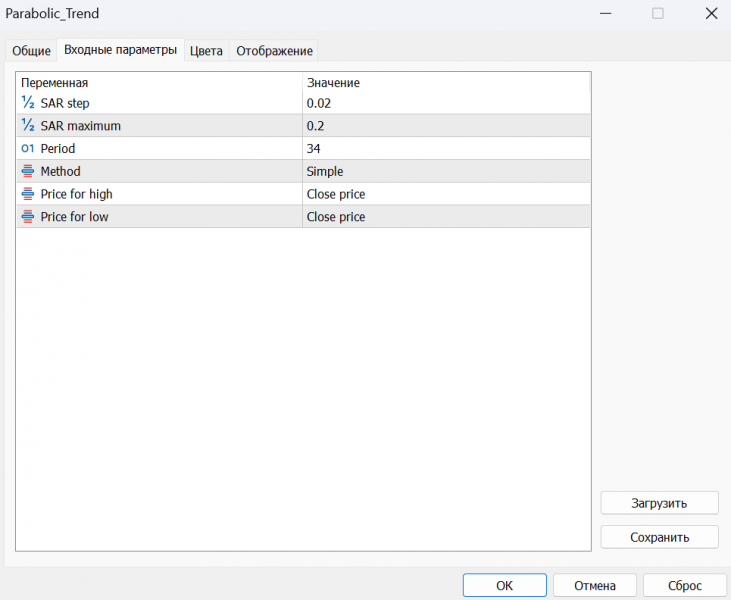 Настройки входных параметров, для тех, кто хочет поставить такие же, как мы разбирали на эфире: