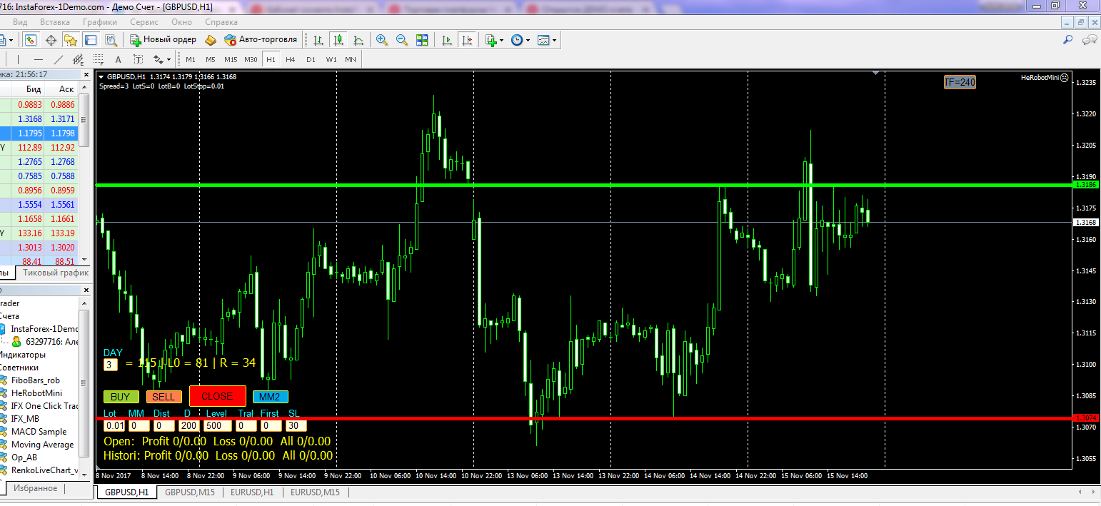 Демо-счёт открыт, терминал скачан, робот инсталлирован в МТ4.