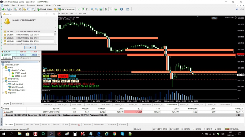 17 ноября во время вебинара успела поставиить 2 сделки, алерты просигнализировали