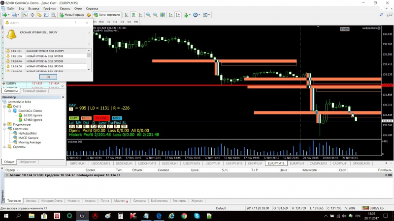 Александр Александровнаписал19 ноября 2017 в 00:55Александр, Вы попробуйте поставить на другие валютные пары и другие ТФ. Может Ваша пара, в тех условиях, не имела уровней на вход по системе Евгения.