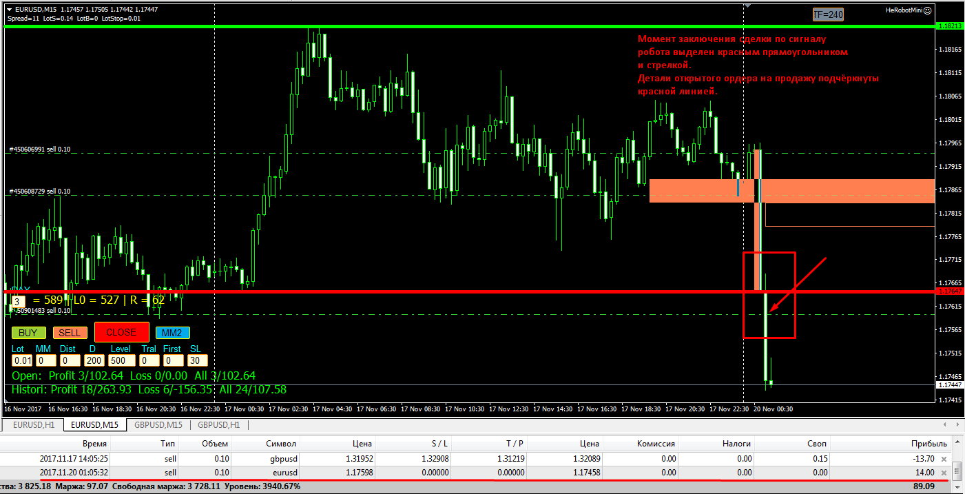 Здравствуйте.Сегодня 18.11.2017г. хотел просмотреть сигналы на истории (поучиться). Но робота на графике нет,как нет и истории сигналов. Сигналы в истории можно посмотреть только в рабочие дни? Учиться в выходные не получится? Спасибо.