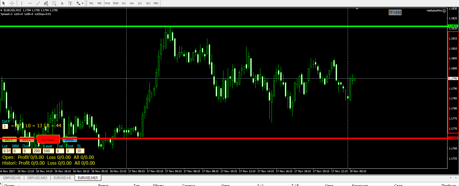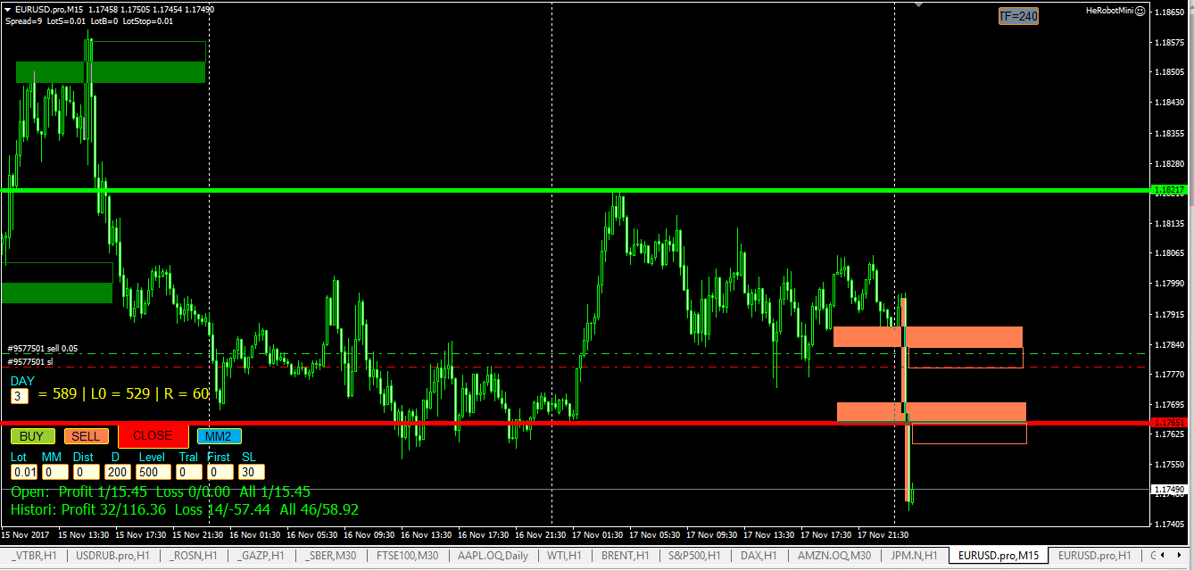 андрейнаписал18 ноября 2017 в 23:38Робот выставляет свои уровни, анализируя рынок, в динамике. Рынок работает по 5-дневке. Если всё правильно установили, то приходите в понедельник и будут Вам уровни и всё прочее...