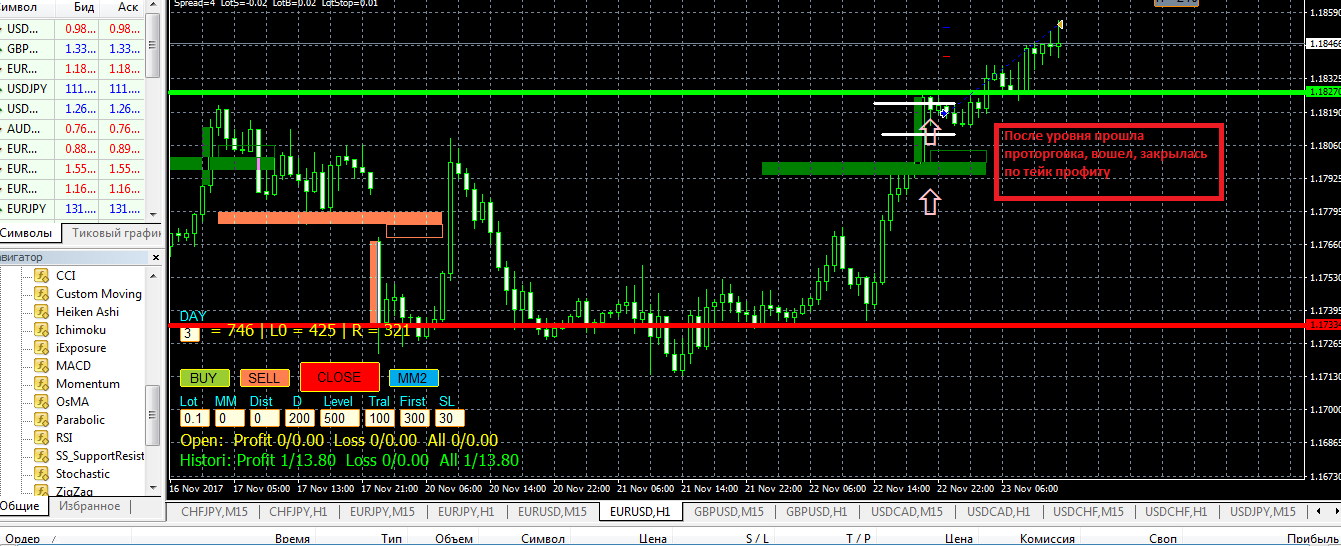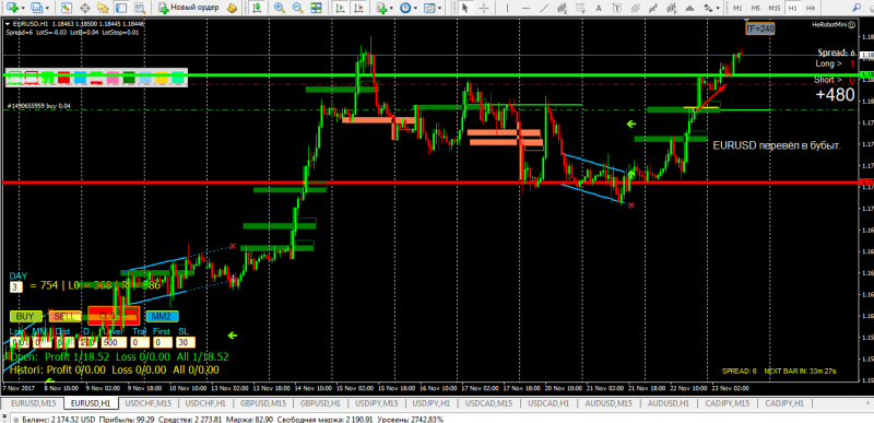 спустя 12 минутРынок в боковике - попробовал на свечке торгануть на еврокаде - плюс 30 баксиков.