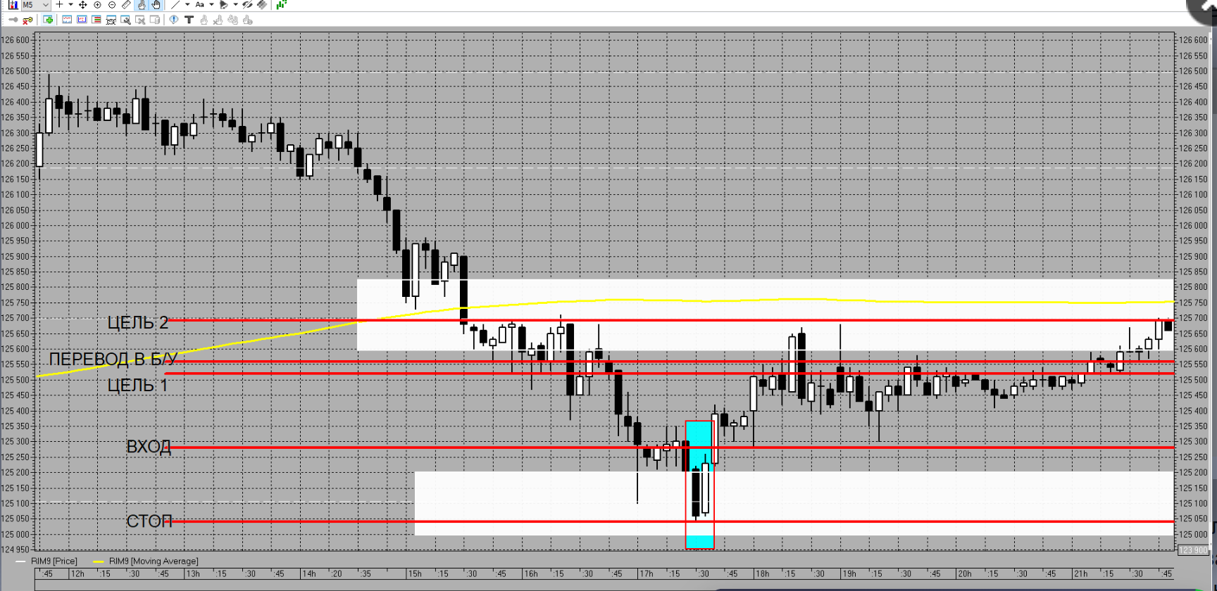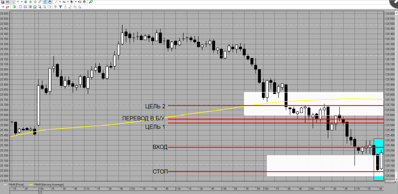 Так же не понятен выход из позиции - до следующего уровня не дошли, встречного пина не было, красную среднюю скользящую не пересекли, дневная сессия не закончилась или .