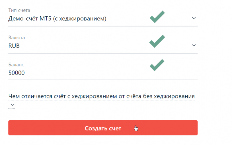 - Тип счета — с хеджированием (это позволит открывать несколько независимых сделок и гибко управлять настройками торговли)