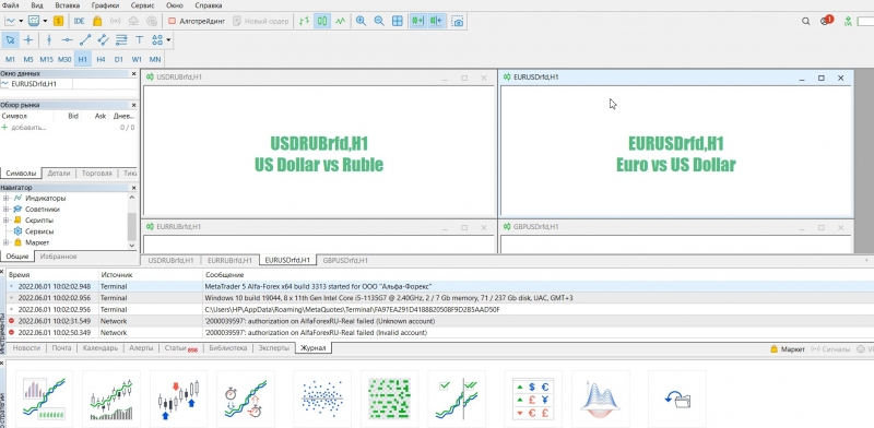 Добрый день. Обязательно Альфа-Форекс?, прошел быструю регистрацию демо счета на Финам Форекс, но они предоставили данные для МТ4, я так понимаю индикатор на нём работать не будет, нужен МТ5?