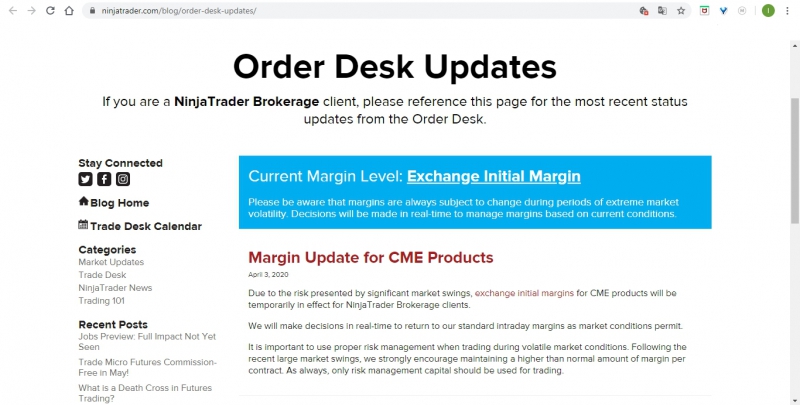 Продолжается период экстремально высокой волатильности на финансовых рынках и NinjaTrader меняет маржинальные требования каждый день!