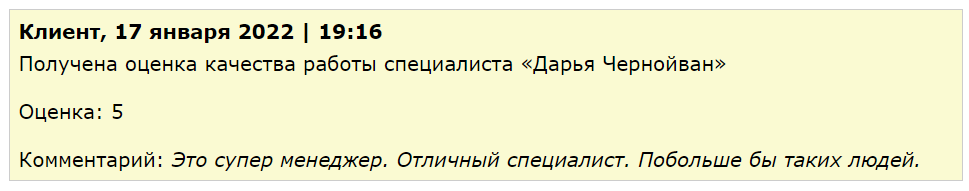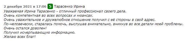 Отзыв от клиента по работе специалиста по брокерам — Ирины Тарасенко: