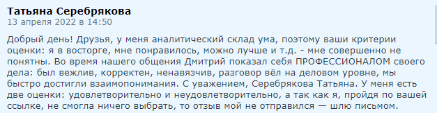 Отзыв клиента по работе менеджера отдела продаж — Дмитрия Осипцова: