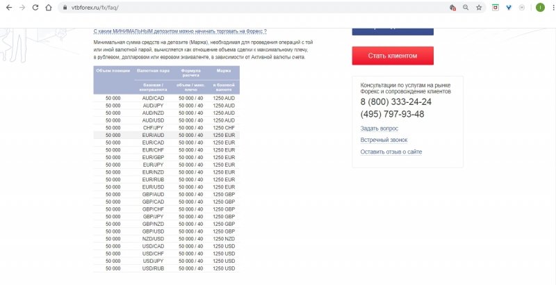 - Минимальный первоначальный депозит: т.к. минимальный объем сделки в ВТБ Форекс — 0.5 лота, депозит требуется достаточно крупный.