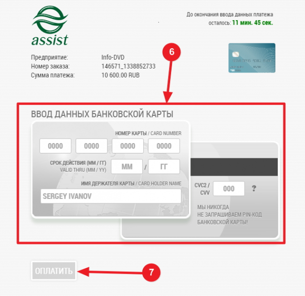 ВНИМАНИЕ! PIN-код и CVV-код — это две разные вещи!