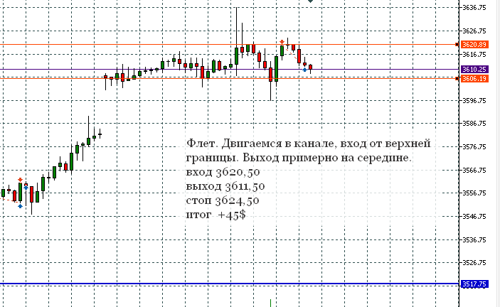 Итог сделки: + $37,50 — сегодня одним лотом закрыл по рынку на всякий пожарный, т.к. цена не хотела дотянуть до ТП 3217,00 (лучше соловей в клетке... с таким результатом жить можно)