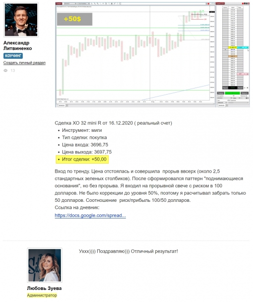 Ученики Любови Зуевой продолжают публиковать свои отчеты по сделкам на CME. С каждым участником коучинг-группы идет индивидуальная работа.