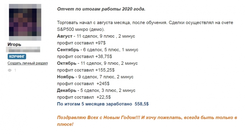 Александр Литвиненко занимается в группе «Легкие деньги на CME» по пакету «Коучинг», который предусматривает пожизненную поддержку автора.
