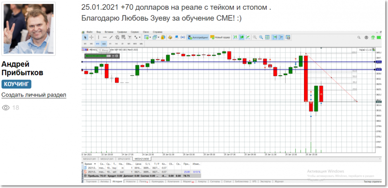 «25.01.2021 +70 долларов на реале с тейком и стопом.