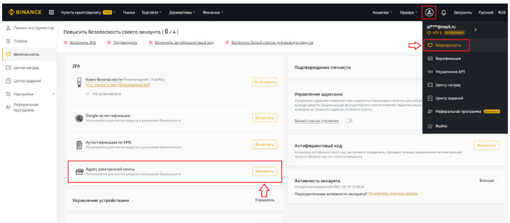 Как изменить адрес электронной почты аккаунта на бирже Binance?