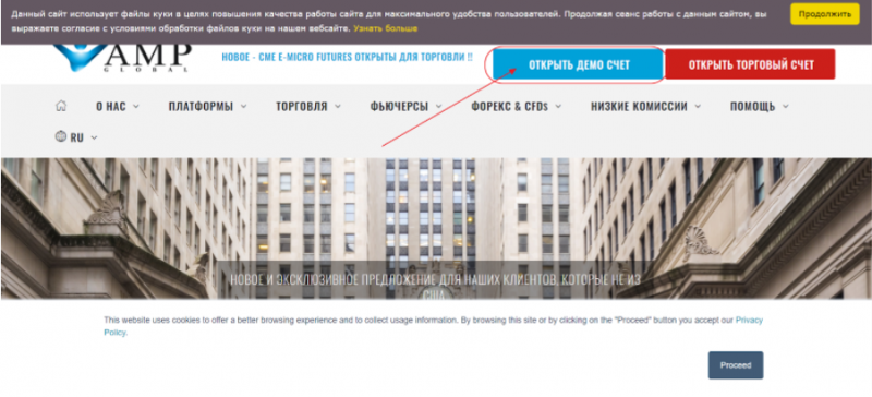 Для того, чтобы открыть демо-счет у брокера AMP Global необходимо перейти по ссылке: https://ru.ampglobal.com/