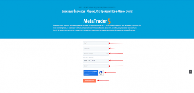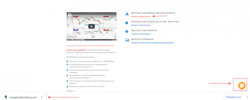 После этого Вам откроется доступ для скачивания платформы MetaTrader 5: