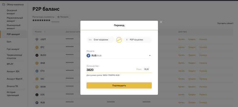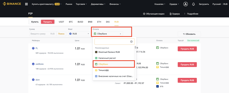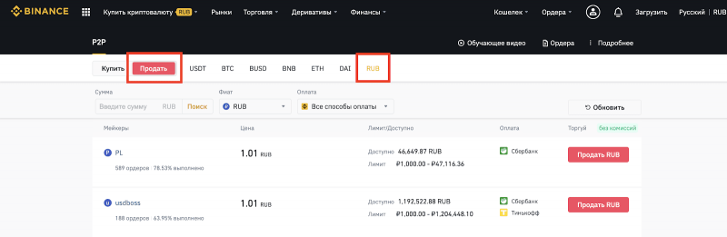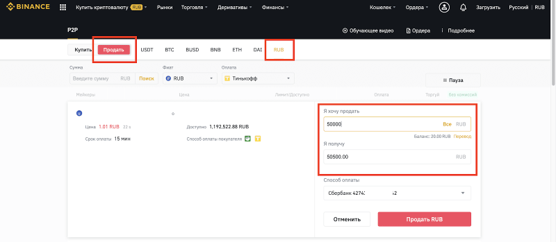 Как осуществить вывод средств в российских рублях с Binance при помощи P2P