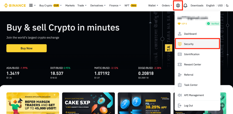 1. Зайдите свой аккаунт Binance и нажмите «Профиль» - «Безопасность».
